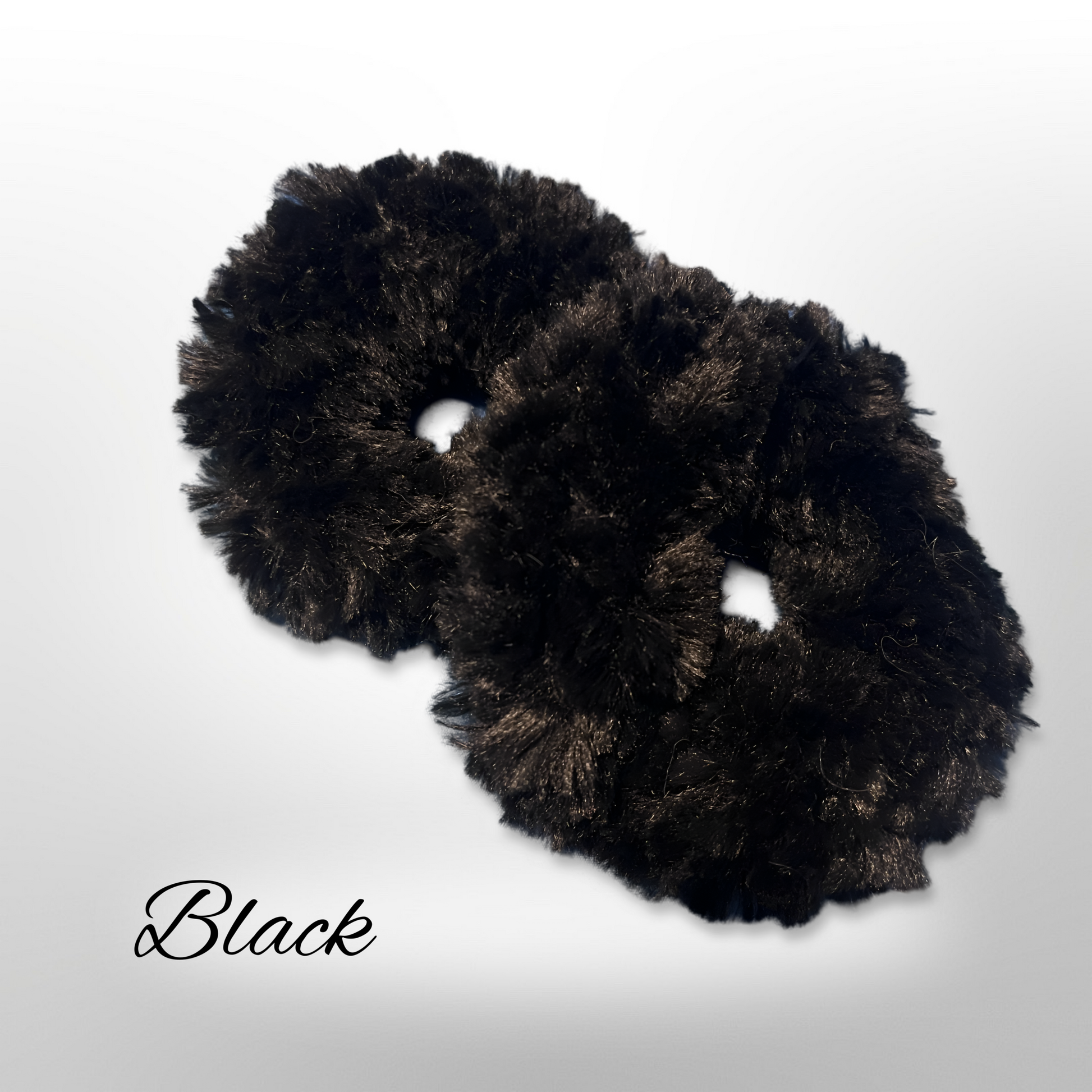 Homemade Scrunchies made with Faux Fur Yarn. Very soft and nice with your hair.